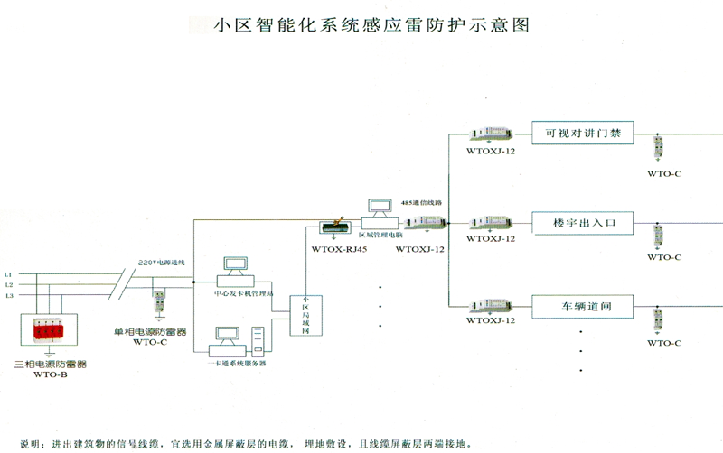 小區(qū)智能化系統(tǒng)感應(yīng)雷防護(hù)示意圖