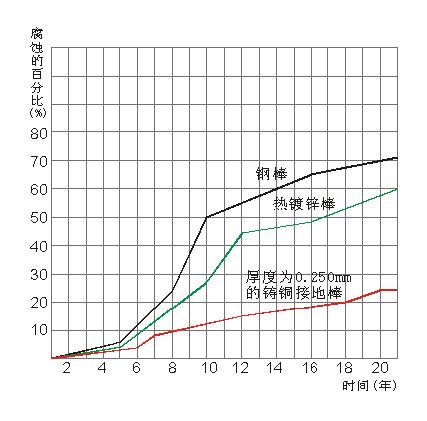 電鍍銅接地材料表層為純度99.9%電解銅,其銅層與鋼層的結(jié)合是分子的結(jié)合,克服了自身的電化學(xué)腐蝕,因而埋在土壤中有很強的耐腐蝕性能,結(jié)合國際范例其使用壽命在30年以上。
